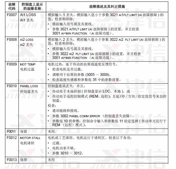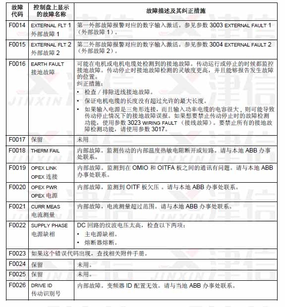 可以通過MENU/ENTER鍵來清除故障信息。如果故障依然存在,故障信息會在幾秒鍾後再次出現。此時需要根據故障代碼來進行相應的檢查和采取應對措施。