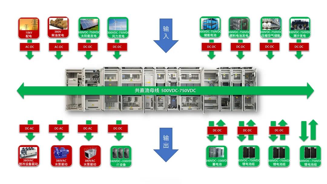 丹佛斯智慧綜合配電係統可實現可再生能源的綠電和直流電網間的可靠電源轉換,並通過其儲能功能,將多餘的潔淨能源儲備起來,使電網在相對較低的平均功率需求下持續運行,同時為數據中心提供智能可靠的優質電源供應和後備電源保護,解決了傳統交流供電係統存在的多級能量變化損耗高、供電變換靈活性差的問題,同時有效降低數據中心的PUE。