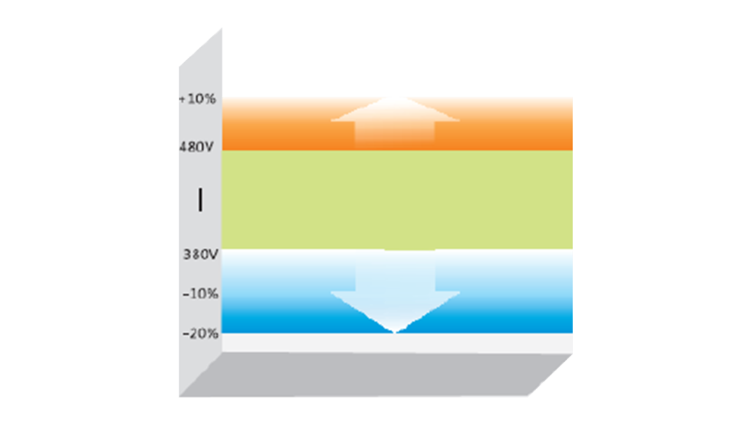 可在200~240V/380~480V(-20%~+10%)電壓範圍內工作,滿足苛刻的用戶電網環境。