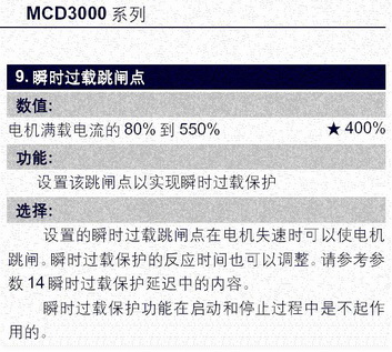 上圖是丹佛斯軟起動器瞬時過載保護的整定參數。