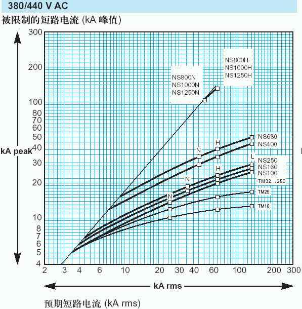 再看一下施耐德NS斷路器的高級功能 — reflex能量跳閘功能,據稱在短路故障時能產生一種強大氣體壓力直接作用於一個活塞機構,使斷路器快速可靠地分斷。由於動作非常迅速,<10ms,所以如同快速熔斷器一樣,具有自然抑製短路電流的功能。其限流特性曲線如下圖: