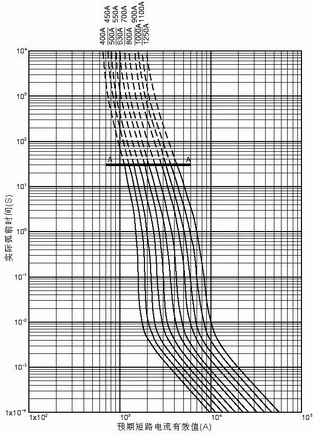 弧前時間具體值可從圖五查得。可以查到額定電流800A的快速熔斷器,當短路電流為13222A時,弧前時間<2mS;當短路電流為99165A時,弧前時間< 0.1mS。