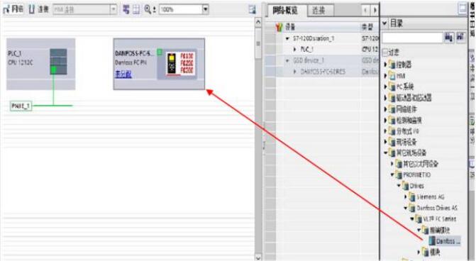 七、:配置深夜福利免费(進入‘網絡視圖’-打開右側‘硬件目錄’-選擇‘Danfoss Drives AS-前端模塊’-‘Danfoss-FC-SERIES’),如圖七所示: