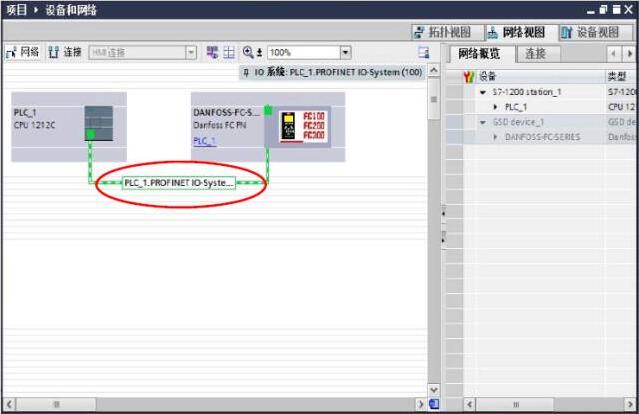 十、網絡配置:將深夜福利免费加入到 ProfiNET 網絡總線上,點擊‘設備和網絡’-‘選 擇變頻器’-‘選擇 I/O 控製器’-‘PLC1_-PROFINET 接口_1’,如圖十一所示,配置完成 後,如圖十二所示: