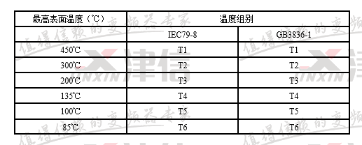 這是與氣體點燃溫度有關的電氣設備(假定環境溫度為40℃時)的最高表麵溫度,點燃能量與點燃溫度無關。在標準BS5345第一部分中列出了所有可燃性氣體和其組別。