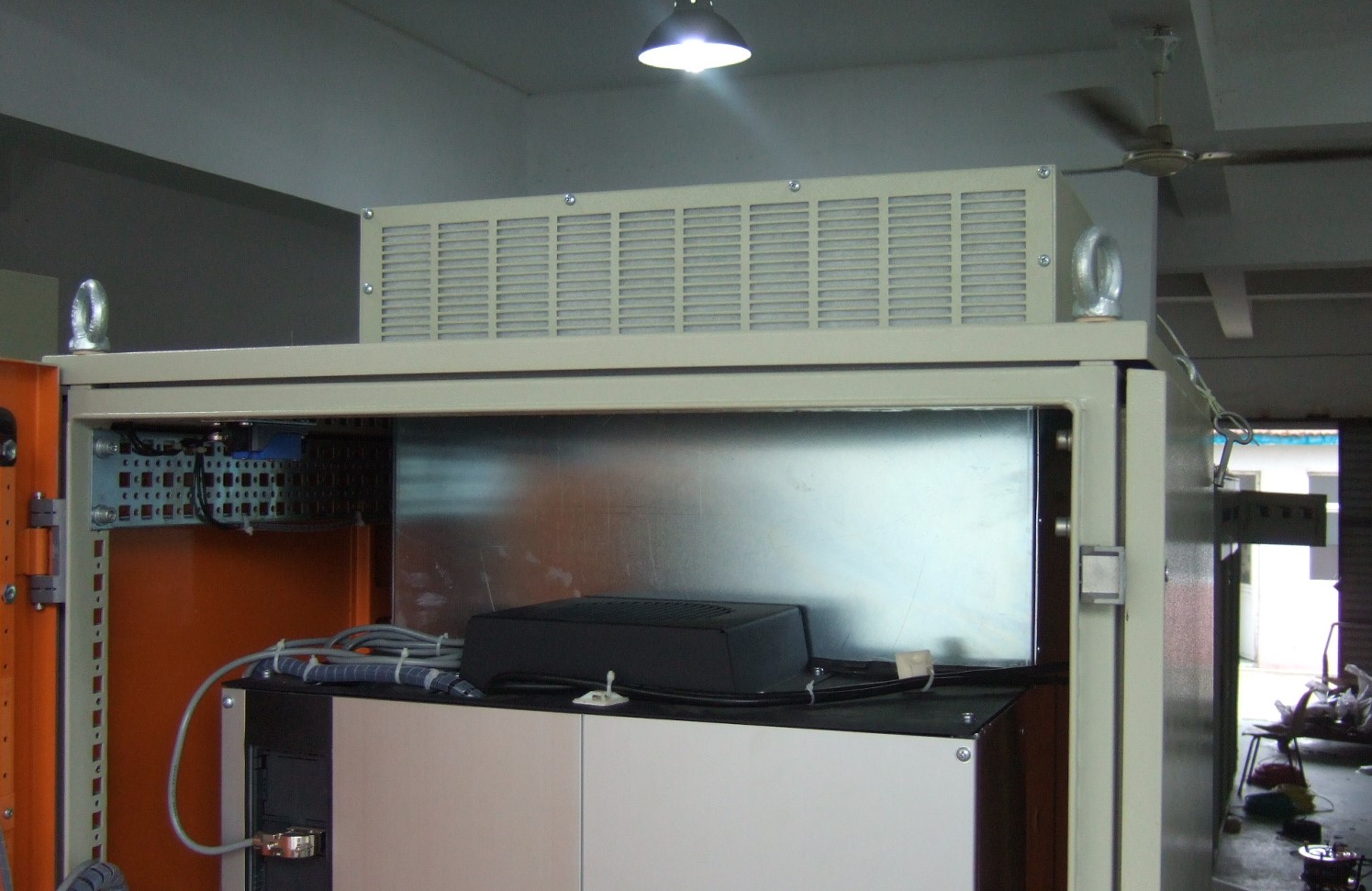 6、如果不用獨立風道,請按照公式Q(m³/h)=3.1*P(w)/K(℃)計算,其中Q 是所需要的散熱風量、P 是櫃內總發熱量、K 是溫升(取值為45℃-最高環境溫度),計算出Q 後,建議按照兩倍的經驗值來選擇,因為櫃內散熱不是百分百的有效散熱,特別是風扇有濾網時更要再放大。