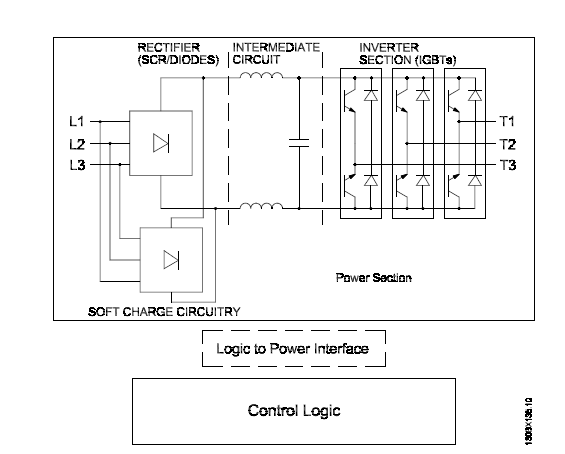 深夜福利免费用於向標準三相感應式電動機提供經調節的交流主電源,通過提供可變頻率和電壓,從而控製電動機的速度。深夜福利免费分為以下部分:
