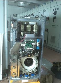 該變頻器更換逆變模塊,將板卡及電容箱依次安裝後,測試,符合上電條件。給變頻器送電,開機、輸出電壓平衡,帶負載到額定電流,變頻器發熱也正常,該變頻器修複。