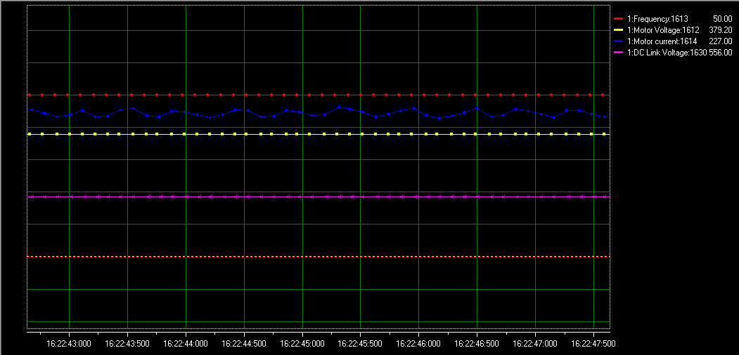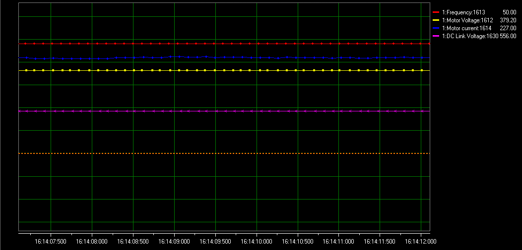 對以上參數進行調整後,客戶描述的現象(電機的震動和噪音)明顯得到解決,以下為變頻器經過調整過後的電機波形和音頻文件