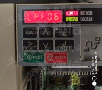 2,然後將變頻器送電,操作麵板故障指示燈亮,顯示報警代碼CPF06。按“RESET”無法複位故障。