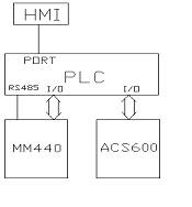 兩台變頻器的起動/停止,故障報警全部通過數字I/O點控製;收卷跳舞輪位置控製由ACS600獨立完成;主機轉速由S7-200 PLC通過RS485串行通訊口給定。