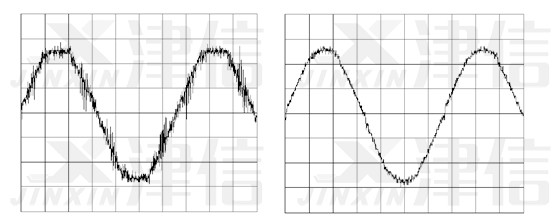 u 圖9所示是加裝直流電抗器以後測量到的電源電壓的波形。可以看出電源電壓得到了明顯的改善,平頂波消失了,傳導幹擾明顯減小。電源電壓更接近於平滑的正弦波。
