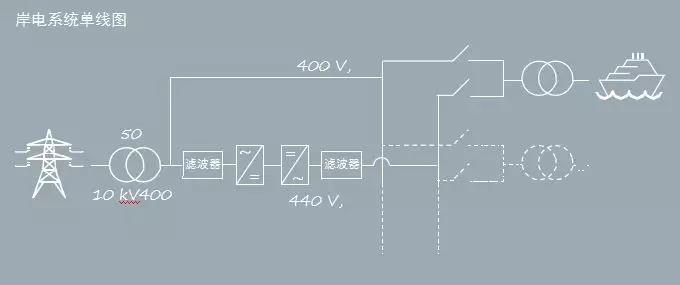 同時,係統配備了可產生440V, 60Hz清潔電網的微網功能。全部8個岸基供電接口都自帶變壓器。每台變壓器的原邊都可以直接連接到電網提供的400V,50Hz電源或者變換器提供的440V,60Hz電源,完全視每艘船的電網需求而定。每台變壓器都有2個進線斷路器:一個用於50Hz電網,另一個用於60Hz電網。
