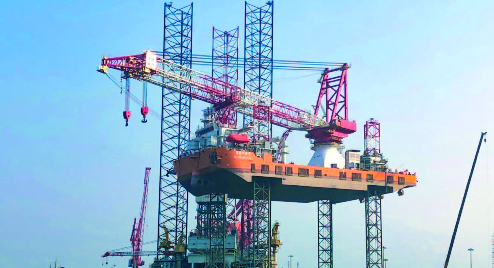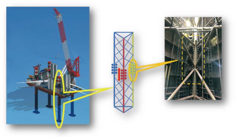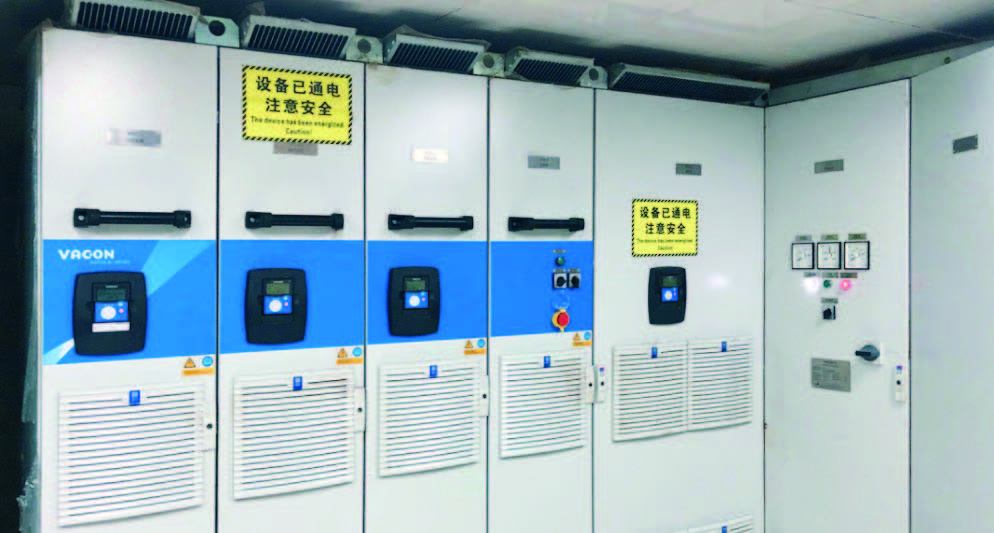 平台的關鍵配置為變頻動齒輪齒條升降係統,整個平台共有4個樁腿,可以自由上下升降,並且需要根據實際工況隨時調節三邊鋼結構舷的應力。整個平台的重量都承受在4個樁腿上,因此對於啟動時候的電機力矩有很高的要求。因此公司采用Danfoss VACON® NXPCommon DC Bus System係列共直流母線驅動產品作為抬升係統的電氣驅動使用。