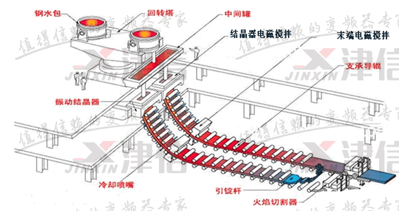 由於電磁場的作用具有非接觸的特點,特別適合於高溫鋼水這種特殊場合,連鑄機的電磁攪拌(Electromagnetic stirring:EMS)技術隨之應運而生,它可以顯著改善鑄坯質量,因此在國內外受到高度重視並得到快速發展與廣泛應用。目前,煉鋼廠連鑄機電磁攪拌裝置已經成為冶煉高性能品種鋼水必不可少的設備