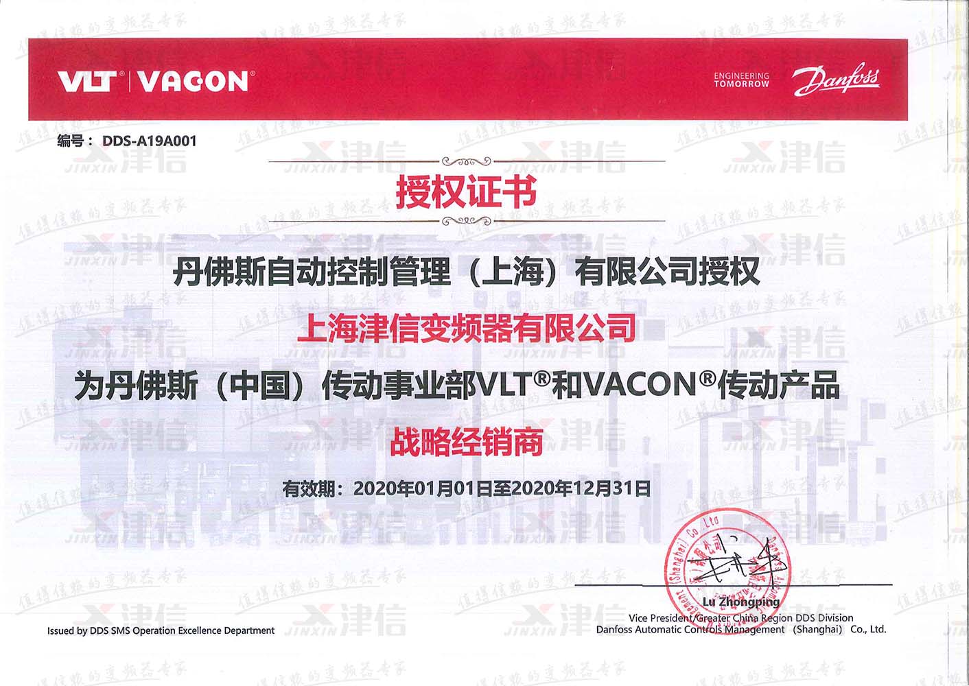 丹佛斯傳動戰略經銷商上海深夜福利导航授權證書